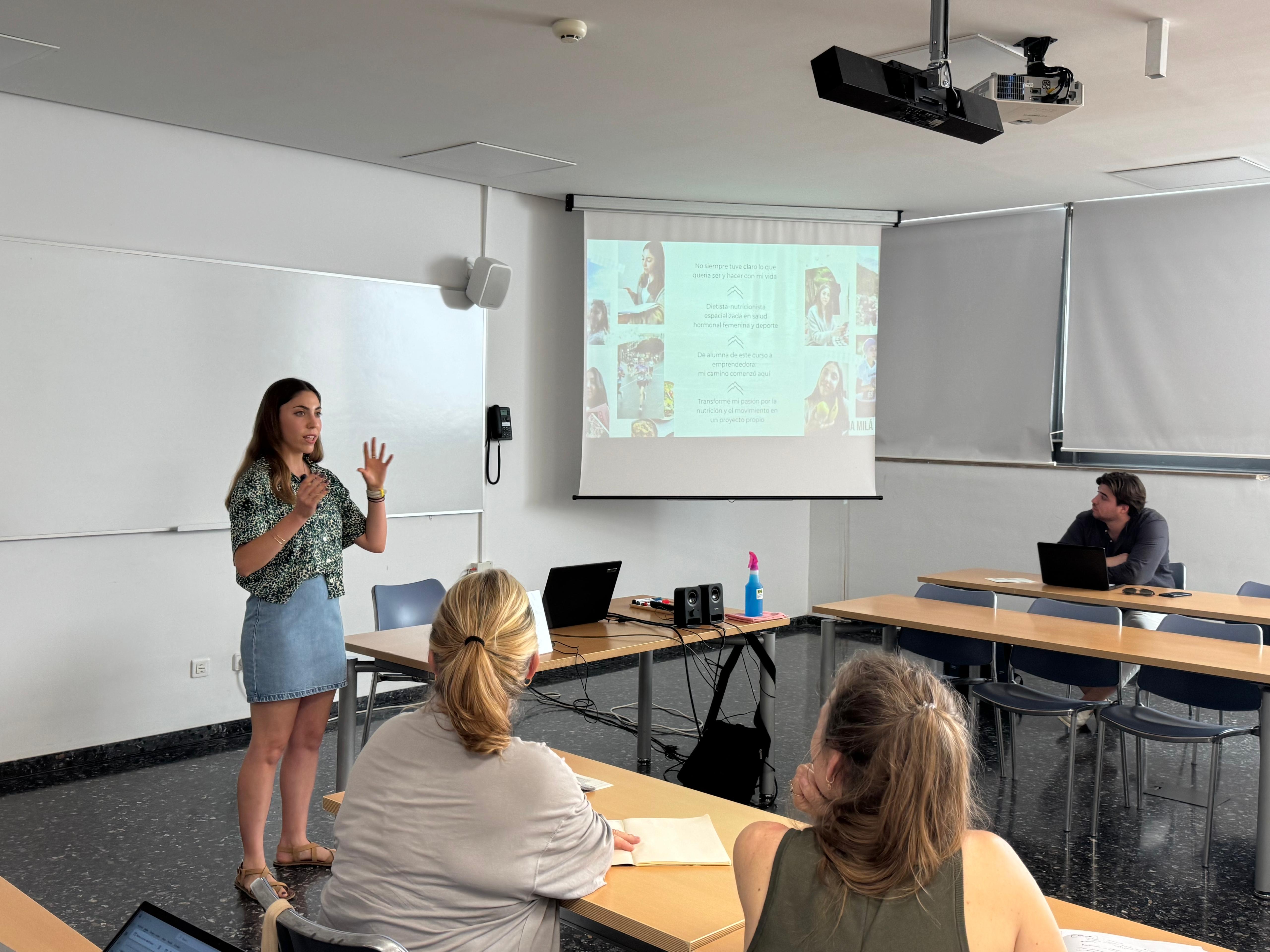 Este martes ha tenido lugar una de las sesiones más personales y transformadoras del programa Jo vull ser empresari, con una invitada muy especial: Julia Milá, alumni de la Cátedra de Cultura Empresarial y fundadora de “Julia Milá, nutrición en femenino”. Bajo el título “De alumna a emprendedora: mi camino y aprendizajes”, Julia ha compartido su paso de estudiante a emprendedora, destacando el antes y el después que supuso su paso por la Cátedra. Su experiencia ha servido como espejo y referente para el alumnado presente, mostrándoles que el emprendimiento no es una idea abstracta ni un camino reservado para unos pocos, sino una posibilidad real cuando se combinan la motivación, el aprendizaje y el entorno adecuado.
