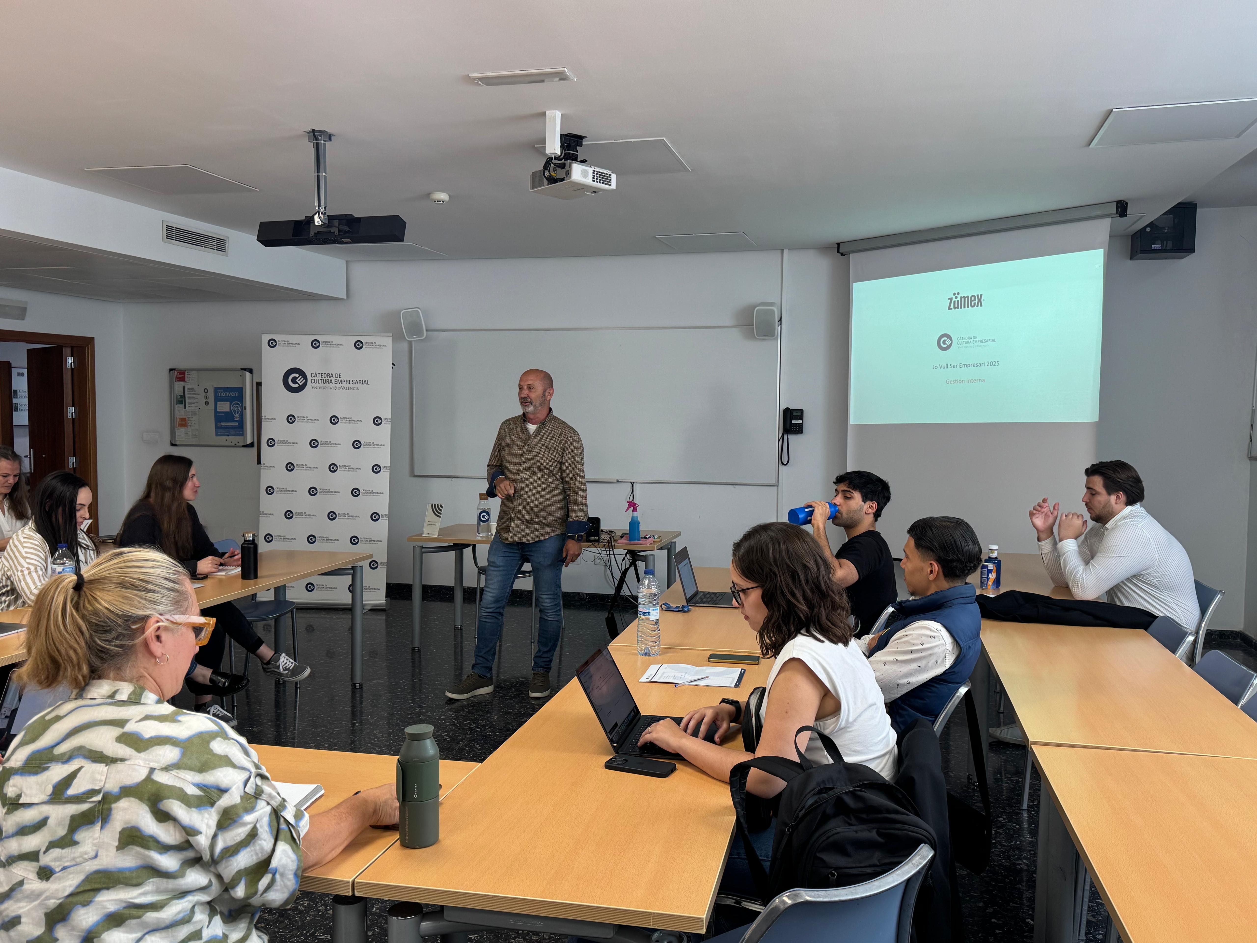 Este jueves celebramos con entusiasmo la tercera sesión del programa Jo Vull Ser Empresari, una jornada llena de inspiración de la mano de Víctor Bertolín, presidente de Zumex. Durante su intervención, Bertolín compartió su visión sobre la gestión interna en las empresas y la importancia de establecer criterios de soporte sólidos en los proyectos para asegurar que estos lleguen lejos.